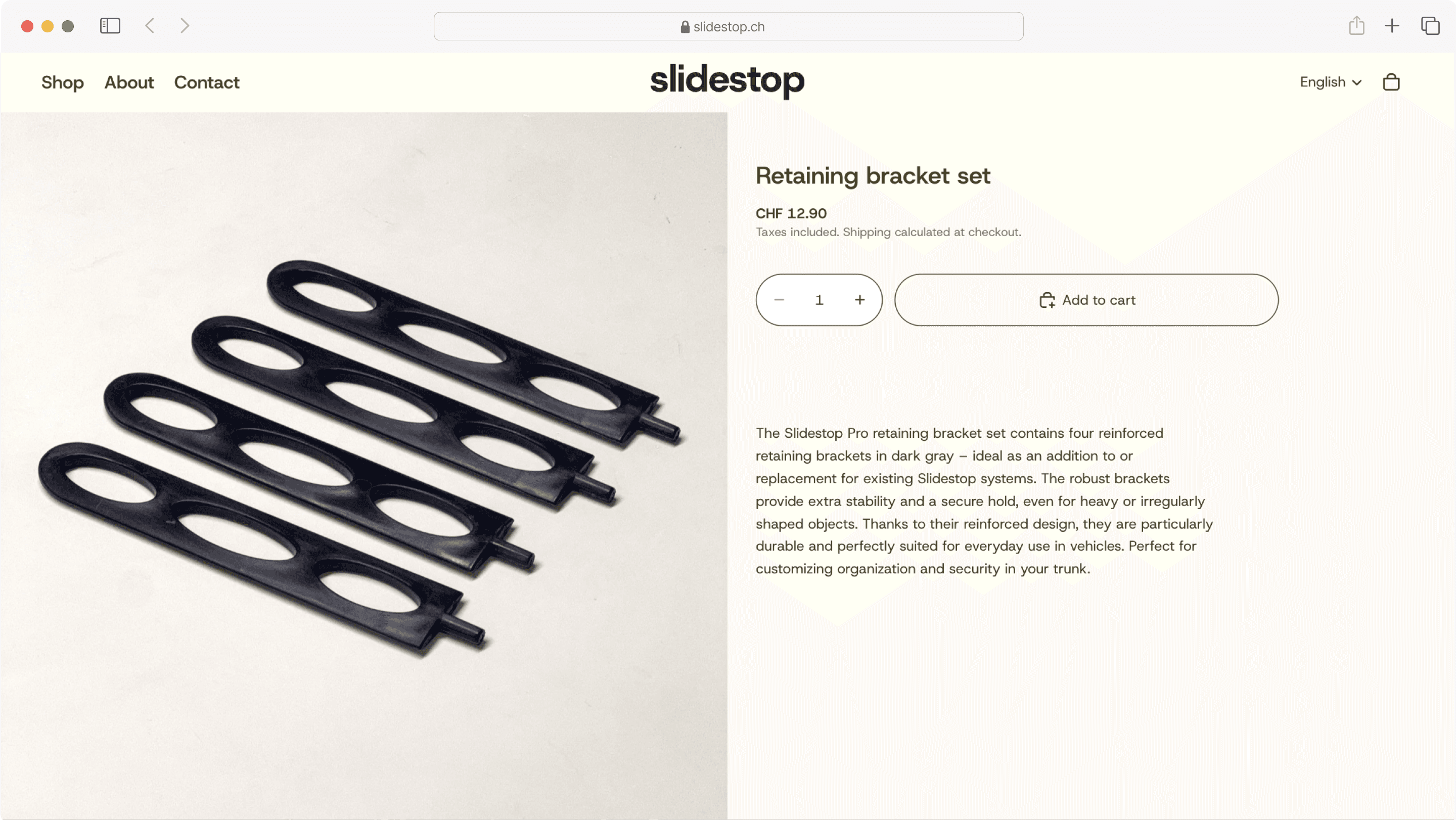 Slidestop is a Swiss brand focused on securely holding loose objects in place in the car, combining functionality, quality, and minimalist design. The goal was to create a clear and trustworthy online presence that communicates product benefits instantly while building a strong, conversion-driven brand experience. The website was designed and developed in Shopify, with a focus on performance, intuitive user journeys, and a seamless shopping experience across all devices.